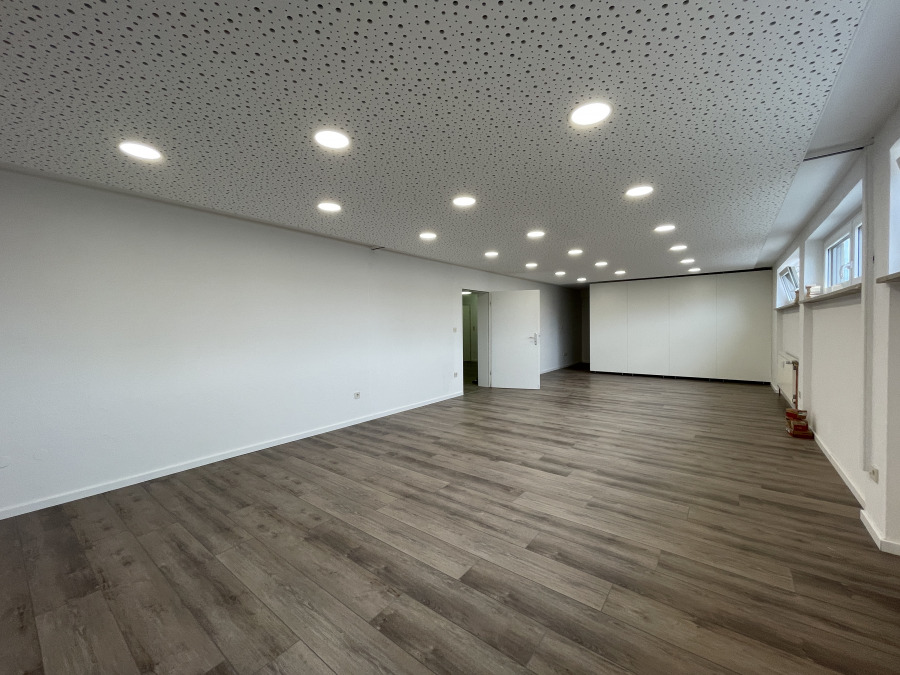 Das Souterrain-Büro ist aufgrund mehrerer Fenster sehr hell und besteht aus einem großen Raum mit ca. 60 m², einem Empfang/Vorraum mit ca. 20 m², eine kleine Teeküche und zwei WC´s.